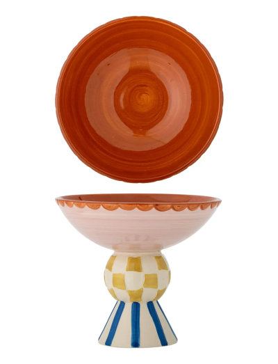 The Bob dish by Bloomingville is made of stoneware and hand-painted in pink, yellow and blue. The elevated base gives it a decorative and playful look. Each piece is unique due to the hand-painted design.