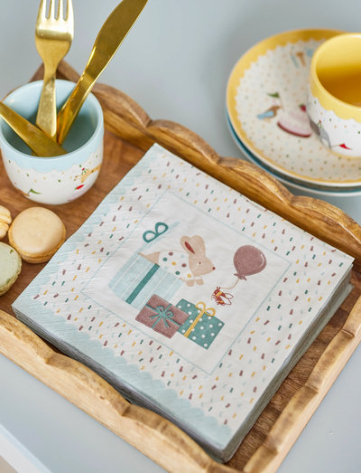 The Celebrate Napkins by Bloomingville MINI are made of FSC-certified paper and come in a pack of 20. Featuring a charming giraffe, bunny, and gifts – perfect for birthdays and festive occasions.