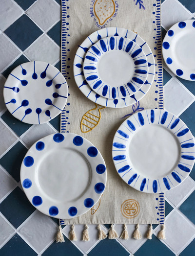 The Linora Plate by Creative Collection is a stoneware set, Each of the three plates features a handpainted finish in soft white with deep blue patterns, Small variations in pattern and color intensity may occur, making each piece unique,