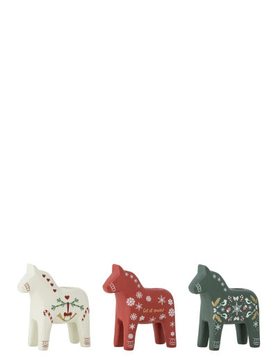 The Siffer Candle Holder by Bloomingville is a charming set of three candle holders, shaped like horses in green, red, and white. Each candle holder is decorated with fine hand-painted details, giving a nostalgic and decorative touch. Perfect as a cozy element in the Christmas decorations, whether grouped on a shelf or placed around the home.
