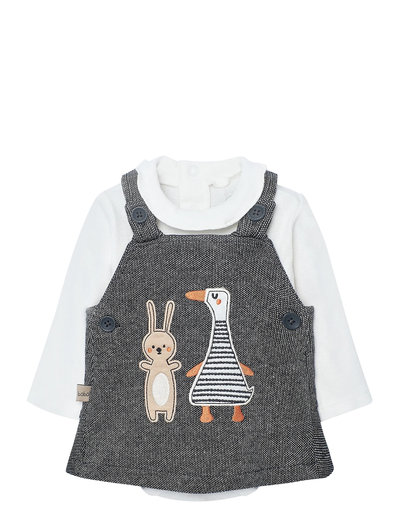 Det här stickade setet är ett charmigt val med sina söta applikationer. Det mjuka tyget ger en behaglig känsla, medan den långärmade tröjan ger extra värme. Perfekt för vardagsbruk.