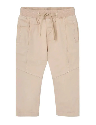 Dessa byxor är tillverkade i stretchgabardin och ger en bekväm passform för ditt barn. Designen har en ribbad midjeresår med dragsko för justering och en klassisk silhuett, vilket gör dem till ett mångsidigt tillskott till varje barns garderob.