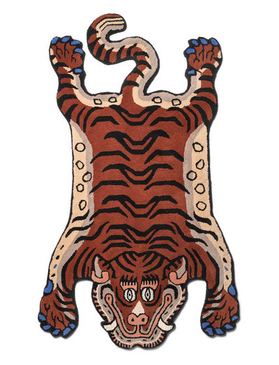 Frankie är en kusin till tigermattan Bongusta, men Frankie är lite mer "vuxen". Denna tigerkompis är tillverkad i mörkare färger och har ett coolt blått nagellack. Frankie är handtuftad i Indien - ett hantverk som har förts vidare genom generationer och resultatet är vackert gjorda mattor med massor av detaljer. Ullen ger slitstarka mattor som känns mjuka och sköna när du går på dem.