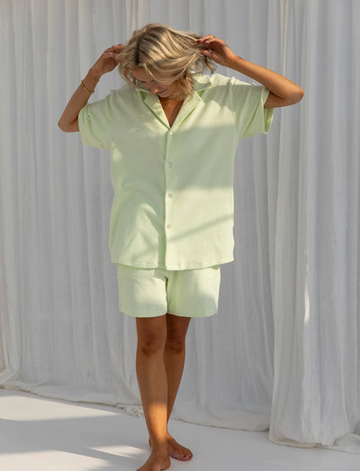 Naram Shorts är ett unisexplagg med normal passform, elastisk midja och justerbart bomullssnöre för perfekt passform. Dessutom har shortsen två praktiska sidofickor och en trendig bakficka. Tillverkade av lättviktig Naram-stickad ekologisk bomullsfrotté (300 gsm väv) och certifierade av OEKO-TEX®. Detta garanterar dig ett par moderiktiga shorts som är skapade med gott samvete. Utforska ett brett urval av färgkombinationer och coola ränder. För den ultimata looken kan du enkelt kombinera dem med Naram Shirt. Finns i tre storlekar.Storlek 0: Midja 49 cm. Höft 50,5 cm. Längd 43 cm.Storlek 1: Midja 51 cm. Höft 52,5 cm. Längd 45 cm.Storlek 2: Midja 53 cm. Höft 54,5 cm. Längd 49 cm.
