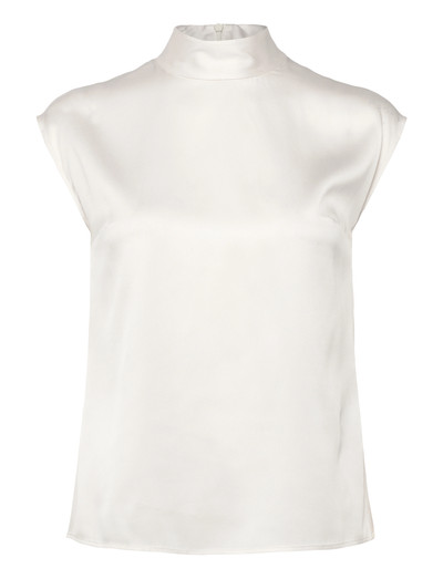 Denna ärmlösa topp är tillverkad med en hög halsringning och ger en sofistikerad silhuett. Dess eleganta design gör den till ett mångsidigt tillskott till varje garderob, som enkelt kan kläs upp eller ner för olika tillfällen.