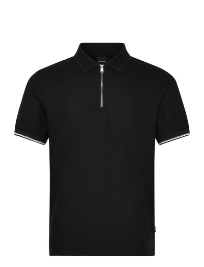 En texturerad stickning ger ett subtilt visuellt intresse till denna kortärmade pikétröja. Designen har en kvart dragkedja och ribbade muddar.