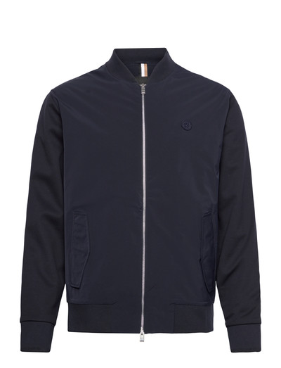 Denna bomberjacka är tillverkad i en blandning av stretchnylon och rent interlock-tyg, vilket ger både komfort och en raffinerad look. Passpoaldetaljer framhäver dragkedjan och fickorna, medan den ikoniska tejpen inuti och de platta stickade detaljerna med glänsande spetsar ger en subtil detalj.