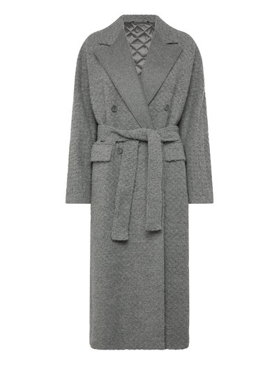 Denna ullkappa har en tidlös silhuett med dubbelknäppning framtill. Designen har ett knytband i midjan som framhäver formen och avslutas med diskreta sidfickor.