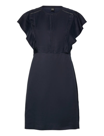 Den här klänningen har en klassisk design med rund halsringning och korta ärmar. Den har en smickrande passform och en bekväm känsla. Klänningen är perfekt för alla tillfällen, från en avslappnad dag ute till ett speciellt evenemang.