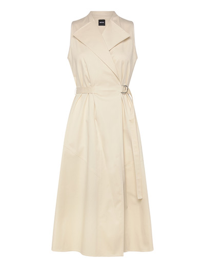 Denna omlottklänning definieras av sin ärmlösa design och midilängd och erbjuder en sofistikerad silhuett. Ett knytbälte framhäver midjan och förbättrar passformen. Den trenchinspirerade kragen ger en raffinerad touch.