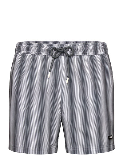 Dessa badshorts är tillverkade av återvunnen polyester och har ett subtilt randigt tryck. De har en elastisk midja för flexibel passform, sidfickor och en bakficka med en logotypflagga. De solida snörena har snörändar med varumärke.