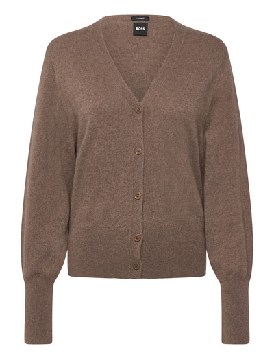 Denna cardigan har en V-ringning och knäppning framtill, vilket ger en tidlös silhuett. De långa ärmarna avslutas med åtsittande muddar, vilket ger en touch av elegans till denna mångsidiga stickade tröja.