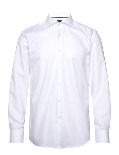 Denna skjorta är tillverkad med en raffinerad spetsig krage och ger en skarp och ren look. Den subtila texturen ger visuellt intresse, vilket gör den till ett mångsidigt val för både professionella och smarta avslappnade sammanhang. Den skräddarsydda passformen säkerställer en smickrande silhuett.