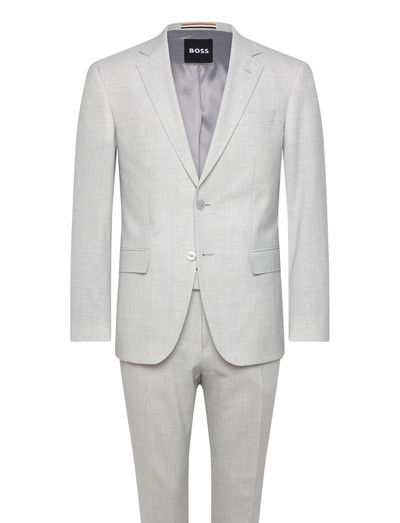 En raffinerad kostym för formella tillfällen med en strukturerad silhuett. Kavajen har designats med hackade kavajslag och en tvåknäppning, medan byxorna erbjuder en bekväm passform.