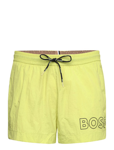 Short length swim trunk for a sporty look / 100% polyamide fabric / Quick dry function/bold outlined logo print on the leg / Contrast inner waistband / Back corporate stripes loop tape / Contrast BOSS repeated cords with plastic cord ends / 32cm side length on a size M