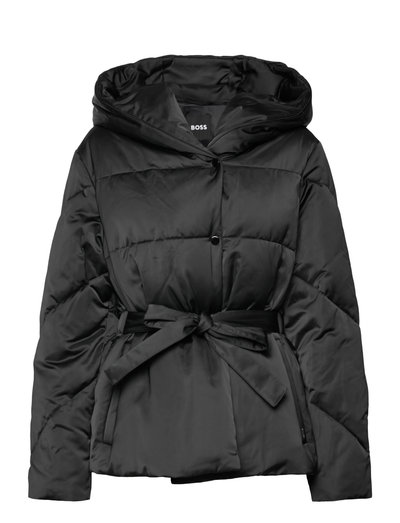 Denna quiltade jacka definieras av en design med huva och ett knytband i midjan. Den är perfekt för kyligare dagar och ger både stil och komfort.