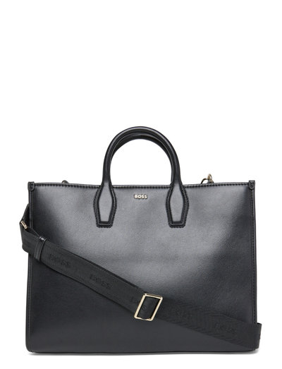 Denna toteväska är tillverkad av regenererat läder och har ett elegant, slätt utseende och en fast känsla. En justerbar axelrem och en dragkedjeförsedd framficka ökar dess praktiska användbarhet.