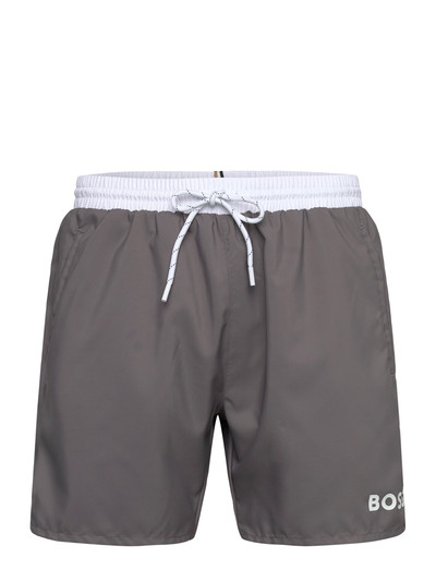 SnabbtorkandeDessa BOSS Black badshorts är ett snyggt och bekvämt val för din nästa strandresa. De har en klassisk design med en kontrastfärgad midja och en signatur BOSS-logotyp på benet. Shortsen är gjorda av ett snabbtorkande tyg som håller dig sval och bekväm hela dagen.