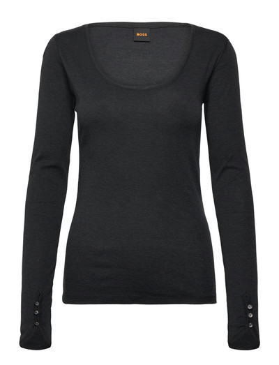 Denna långärmade tröja är skapad för komfort och har en smickrande, rund halsringning. Manschetterna är detaljerade med knappar, vilket ger en sofistikerad touch till detta avslappnade plagg.