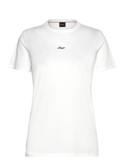 Denna kortärmade topp är tillverkad av mjukt tyg och ger en behaglig känsla. Den har en rund halsringning och en diskret logodetalj, vilket gör den till ett mångsidigt tillskott till din garderob.
