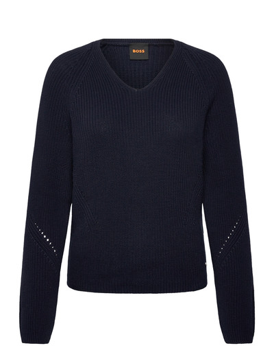 Denna stickade tröja har en bekväm V-ringning och ger en raffinerad look. Raglanärmar och subtila detaljer vid axlarna ger en sofistikerad touch till detta mångsidiga plagg.