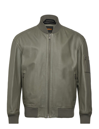 Denna bomberjacka är tillverkad av mjukt, texturerat fårskinn och har platta bindningsdetaljer och en metalllogotypdragkedja. Den har också en inre passpoalficka, kraftig dubbellagersribbning i bomullslook och fickor med dragkedja med garage och läderkanter. Aviatorfickan och metalllogotypbokstäverna bidrar till dess attraktionskraft.