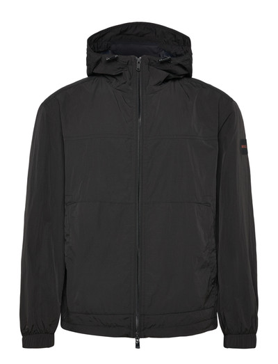 Denna vindjacka har ett mjukt, bomullsliknande skrynkligt tyg som ger en modern look. Den har kängurufickor med tryckknappar, metalltryckknappar och passpoaler vid dragkedjan. Designen kompletteras med ett tonalt logomärke, ventilerande meshfoder i oket, justerbara manschetter med tryckknappar, justerbar fåll med inre dragsko, en normal passform och en skärm på huvan.