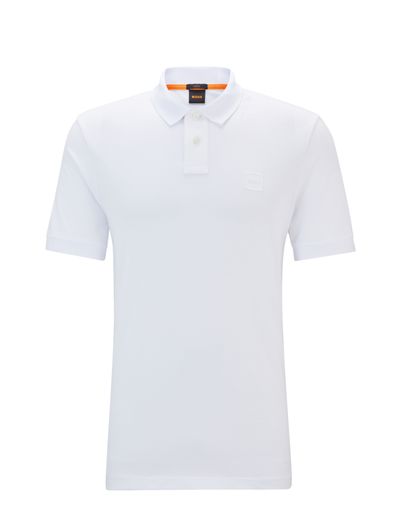 Den här BOSS Orange-poloskjortan är ett klassiskt plagg som kan stylas upp eller ner. Den har en klassisk polokrage, korta ärmar och en knappslå. Skjortan är gjord av en mjuk och bekväm bomullsblend, vilket gör den perfekt för vardagsbruk.