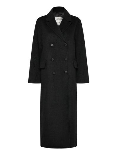 Denna ankellånga kappa är tillverkad av en mjuk återvunnen ullblandning och erbjuder ett bekvämt och stilfullt ytterplagg. Den lätt oversized silhuetten har nedhasade axlar, vilket skapar en avslappnad passform. Den är detaljerad med en dubbelknäppt stängning och praktiska fickor med lock, medan distinkta sömmar ger en extra dimension.