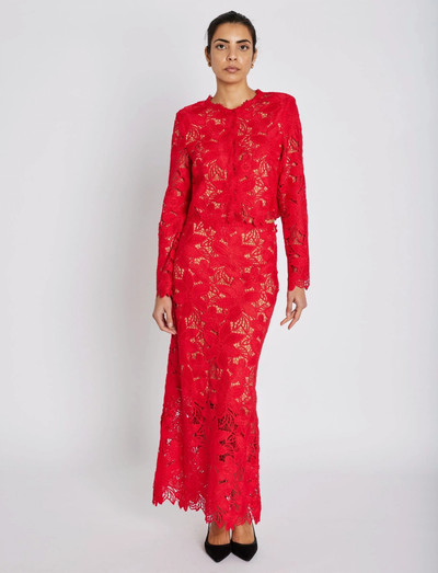 Denna jacka definieras av sin dekorativa blomspets och ger en iögonfallande look. Den normala passformen och eleganta silhuetten gör den till ett mångsidigt plagg. Kombinera den med en matchande kjol för en koordinerad ensemble, eller klä ner den med enkla byxor och en topp.