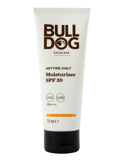 Bulldog Anytime Daily Moisturiser SPF 30, UVA UVB PA+++, är särskilt utvecklad för män och skyddar samt återfuktar huden med noggrant utvalda ingredienser i kombination med mycket effektiva UVA- och UVB-filter. Berikad med vitamin C. Den har en lätt och icke-fet formula som passar alla hudtoner. Denna fuktighetskräm med SPF 30 ger effektivt solskydd och vård anpassad för mäns hud.d.
