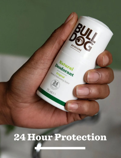 Bulldog Original Deodorant är en skonsam deodorant med naturliga ingredienser för 24 timmars effektivt skydd mot dålig lukt. Den innehåller prebiotiskt extrakt från cikoriarot och 100% naturlig doft med fräscha noter av citron, lime och patchouli.