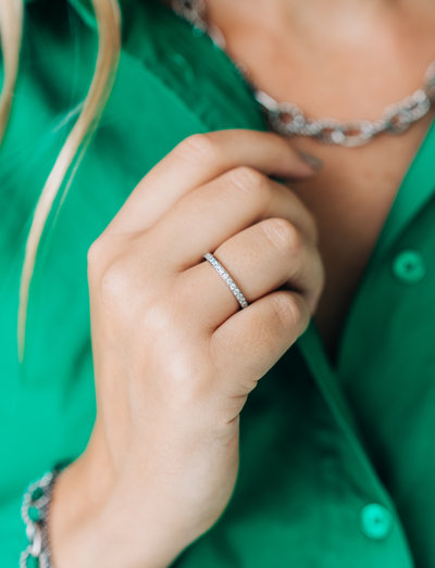 Delikata kristaller accentuerar denna smala ring och ger subtil glans till varje ensemble. En raffinerad ring som ger en touch av elegans, perfekt för vardagsbruk eller speciella tillfällen.