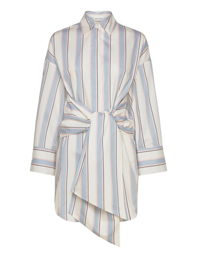 Den här skjorteklänningen har en klassisk krage och en knappslå foran. Den har en knytdetalj i midjan och långa ärmar med knappar i manschetterna. Klänningen är gjord av ett bekvämt och andningsbart tyg.