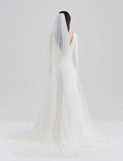 En vågig spetskant ger en delikat touch till denna enkellager katedral slöja. Tillverkad av luftig nylon tyll, är denna slöja den perfekta finishen för en traditionell brudlook.