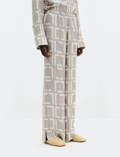 Dessa raka byxor är tillverkade av ren silke och har ett genomgående monogramtryck för en signaturlook. Den avslappnade passformen kompletteras av en elastisk midja med dragsko, vilket garanterar en bekväm och justerbar passform. Slitsar i fållen ger en elegant touch till dessa byxor.