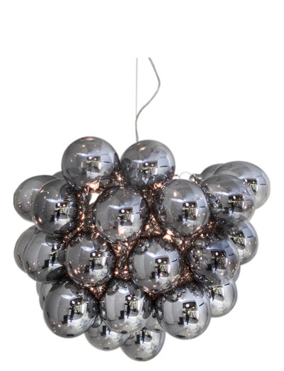 Unna dig höjden av lyx och stil med Gross taklampa Ø50cm, ett svävande moln av 37 stycken skira, munblåsta glaskupor som liknar atomer och ger ifrån sig ett underbart skimmer. Gross är By Rydéns egen serie och en utstickare i vår webbutik. Lampan finns i ett flertal färger, varpå den i klarglas endast säljs på byrydens.com och ingår således i vårt exklusiva sortiment. Övriga färger är matt vit, burgundy, amber, rökgrå och multifärgad.