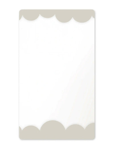 The soft rounded shapes are hand-drawn, creating playful half-circles reminiscent of airy clouds. The frame features a unique design where it doesn't adhere to the classic four-sided structure but rather only covers two sides. This makes it lighter and enables smoother integration with multiple objects. The frame is spray-painted MDF and comes with two different mounting options (horizontal and vertical) for versatile display. A mirror we definitely want to see in many homes to brighten up a room. Available in beige and bordeaux. Size 70x100 cm. Designed by Byon Studio.