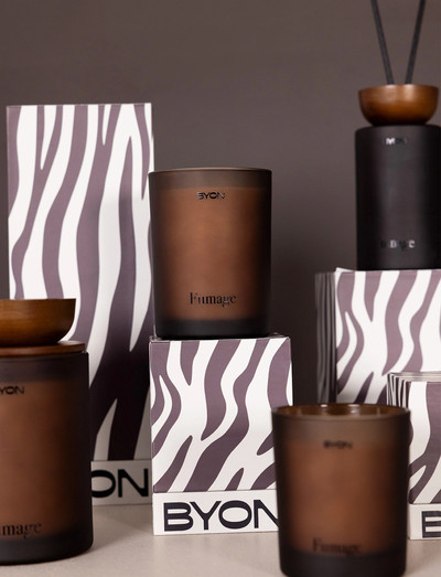 Scented candle Fumage 45h delivers a captivating fragrance experience that adds character to your room. The dark brown glass houses an exquisite blend of scents where mystery, champagne, and tobacco converge in a mesmerizing symphony, transforming every moment into a luxurious experience. The scented candle is crafted from soy wax, fragrance, and vegetable oil, and burns with a cotton wick – completely free from paraffin and other petrochemical substances. For optimal burning performance, trim the wick before each use, never leave the candle burning for more than a couple of hours, and always use a heat-resistant surface. With a burn time of approximately 45 hours, this candle is the perfect companion to create a mood-enhancing ambience. Design Byon Studio. Delivered in a Byon box adorned with a beautiful zebra pattern.