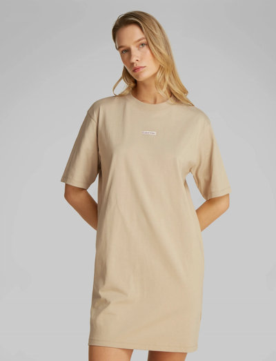 Den här Calvin Klein Jeans t-shirtklänningen är ett snyggt och bekvämt alternativ för alla tillfällen. Den har en klassisk rund hals och korta ärmar, vilket gör den perfekt för lager på lager eller att bära ensam. Klänningen är gjord av ett mjukt och andningsbart tyg som känns bra mot huden.