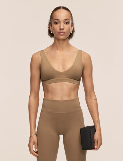 Denna sport-bh har en V-ringning och ett mjukt elastiskt band nedtill, och är tillverkad i ett borstat material som passar perfekt för både gymträning och studiopass. Den ger lätt stöd och har urtagbar vaddering.