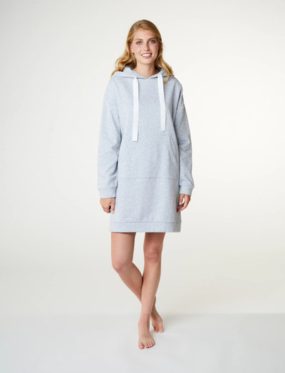 Denna sweatklänning är perfekt för avslappnade dagar och erbjuder en bekväm passform och avslappnad stil. Den har en huva med dragsko och en känguruficka, vilket gör den idealisk för att slappa hemma eller göra ärenden.