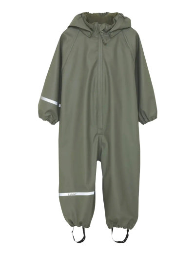 VindtätSolid-colored rain suit in PU from CeLaVi. There are narrow reflective stripes around one arm and one leg. At the top of one arm and on the back of the hood, the logo is printed with a reflective finish. The CeLaVi rain suit has a detachable hood that is fastened with snap buttons at the collar. It closes in the front with a waterproff zipper. The hood opening, sleeves, and waist have elastic for a better fit. The trousers have practical and adjustable elastic straps that can be pulled under the footwear. The rain suit has a water column pressure of 10,000 mm. Certified acc. to GRS - Made with 66% Recycled Material CERES-0366