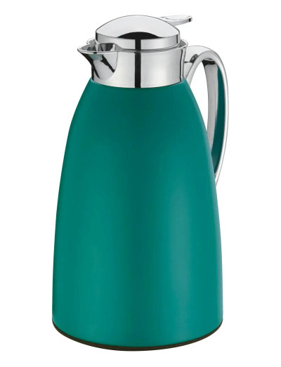 Isolerad kanna. Lackat rostfritt stål, insats av isolerande härdat glas, lock med skruvkapsyl och praktisk enhands-tryckknapp. Håller drycker varma i 12 timmar och kalla i 24 timmar.