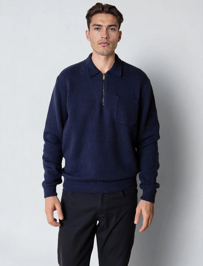 Denna stickade pikétröja har en elegant dragkedja och är tillverkad i en mjuk bomullsblandning, vilket ger en tidlös look. En praktisk framficka ger en funktionell touch till detta klassiska plagg.