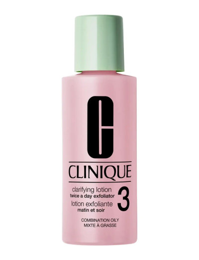 Clinique Clarifying Lotion 2 är en exfolierande, flytande lotion. Den ska användas som steg 2 i Cliniques 3-stegs hudvårdssystem, efter rengöring. Den ger huden en mild peeling som avlägsnar smuts, föroreningar och döda hudceller samtidigt som den stimulerar hudens cellförnyelse. Huden blir mjukare, jämnare och får en klarare lyster.
