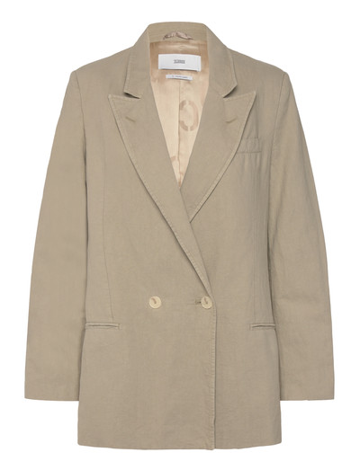 Denna kavaj har en klassisk, dubbelknäppt design och ger en strukturerad silhuett. Hackslagen ger en sofistikerad touch, medan de passpoalerade fickorna ger funktionalitet. En mångsidig modell som kan kläs upp eller ner.