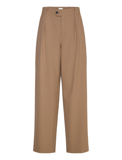 Dessa byxor har en avslappnad silhuett med vida ben och en bekväm passform. Designen har subtila veck framtill, vilket framhäver formen och fallet.
