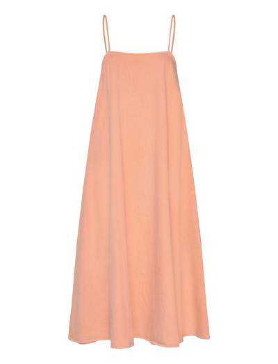 Denna lediga klänning har fina axelband och en rak halsringning, vilket ger en minimalistisk silhuett. Den enkla designen gör den mångsidig och kan användas lager på lager eller för sig.