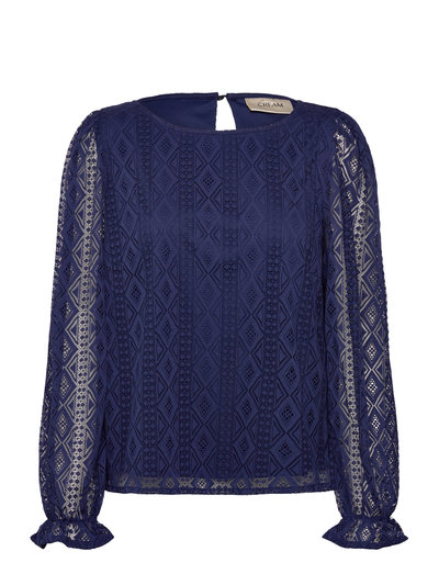 Delikat spets förhöjer denna långärmade blus, vilket gör den till ett sofistikerat val för alla tillfällen. Den subtila texturen och den raffinerade designen tillför en touch av elegans, medan den bekväma passformen säkerställer komfort hela dagen. Avslutad med försiktigt rynkade manschetter.
